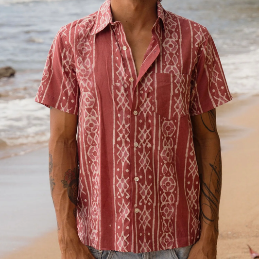 Hand-Block Printed Organic Cotton Shirt - Brick Mezcal