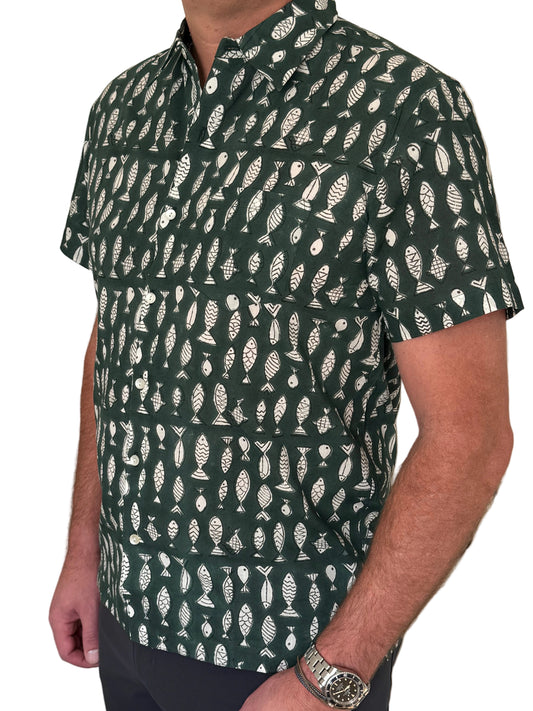 Hand-Block Printed Organic Cotton Shirt - Pescado